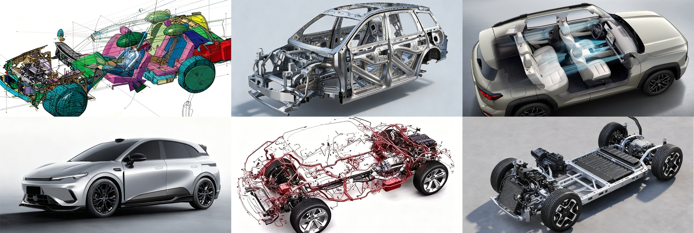 融康可以提供汽车各系统的结构设计服务,涵盖总布置、车身、内外饰、底盘、电子电器、动力等系统的整套解决方案。